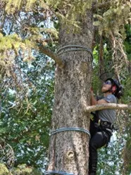 Participants and volunteers finished off the weekend with a fun and supportive ‘Speed Climb’ event. (Yes, that is Prairie Chapter Alberta Director at Large, Jackie Butler headed up the tree!) (Photos – B. Fermaniuk) |
